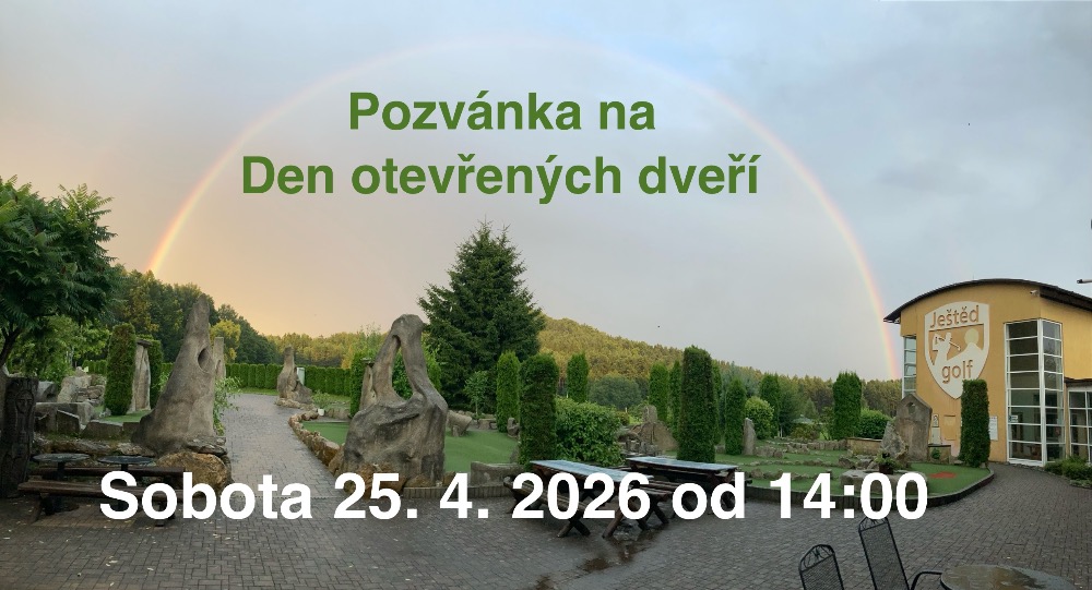 Seznámení veřejnosti s golfem. Sobota 25. dubna od 14:00. Skupinová instruktáž pro jednotlivce, rodiny s dětmi a seniory. Zájemci o golf se během hodiny seznámí se základy. Budou si moci vyzkoušet první odpaly míčků na drivingu a patování na trávě. Po ukončení tréninku následuje časově neomezená hra na adventure golfu. Poplatek 90 Kč za dítě a seniora, 120 Kč dospělí, rodiny 2+2 380 Kč. Golfové hole a míčky zapůjčíme. Pro zájemce brožury Golf do kapsy za 10 Kč. Rezervace zájemců na recepci pro včasné zajištění lektorů. V případě vyššího počtu zájemců lze dohodnout další termíny. Recepce tel. 604 247 054,recepce@golfjested.cz